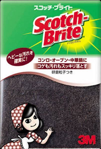 ■【説明】:不織布に研磨粒子を塗布したキッチン用たわし。調理器具のガンコな汚れも素早くスッキリ?キッチン用ナイロン不織布たわし。コンロ・オーブン・中華鍋などのガンコなコゲ汚れもスッキリ落とします