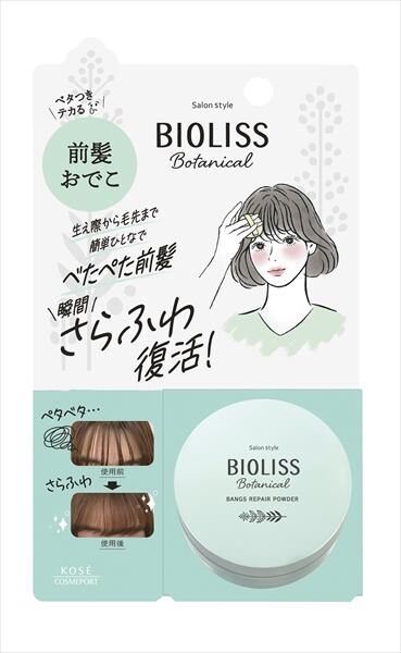 ■【説明】:生え際から毛先まで簡単ひとなで。汗や湿気でくずれたべたぺた前髪も、さらふわな状態へみちびく前髪お直しパウダー。湿気ケア&おでこにも使えるスキンケア処方。