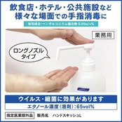 ■【説明】:速乾性の擦り込み式手指消毒剤です。エタノール(100mL中79.2mL含有)を有効成分として配合。食品添加物や食品に使われている成分のみで作られているので、食品を扱う方々の手指の消毒に適しています。素早く乾き、乾いた後の手指はサラッとしているため、衛生手袋をつけて作業をする際にはりつかず、手袋の着脱が楽にできます。【指定医薬部外品】《危険物》