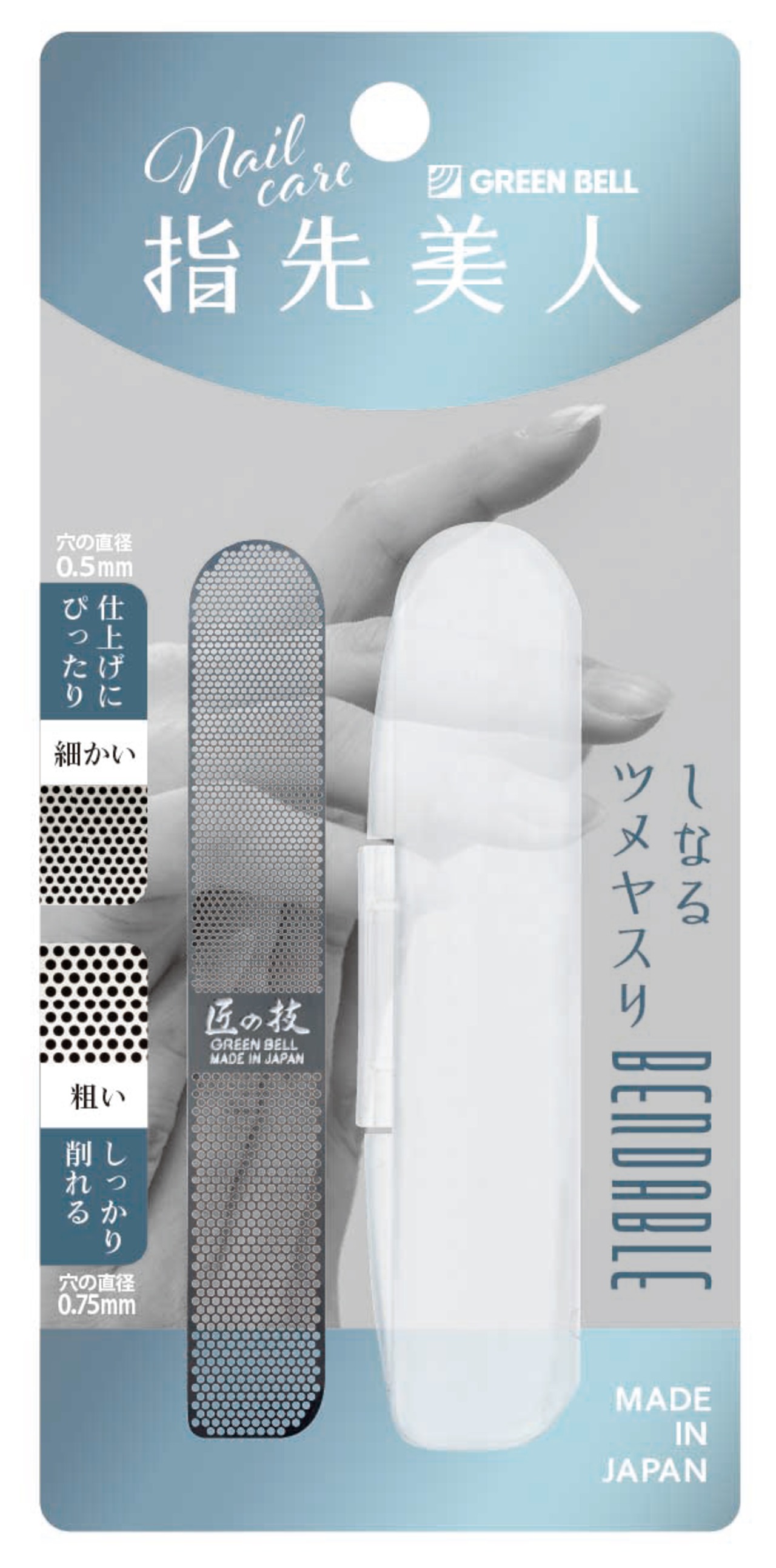 ■【説明】:ほどよいしなりで、指先の爪を削れ、爪表面の凹凸を磨くことで適度に光沢のでるつめやすり