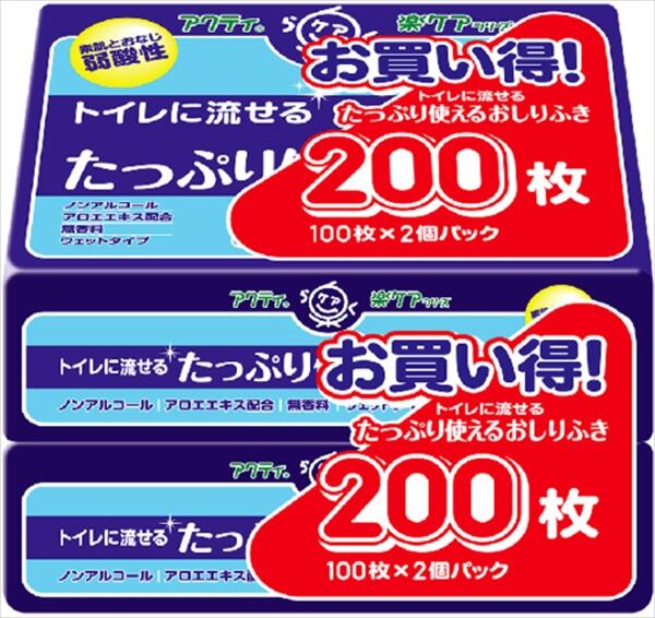 【まとめ買い】アクティ トイレに流せるたっぷり使える おしりふき100枚 2個パック 【日本製紙クレシア】【HRM-20795957-1】×12点セット
