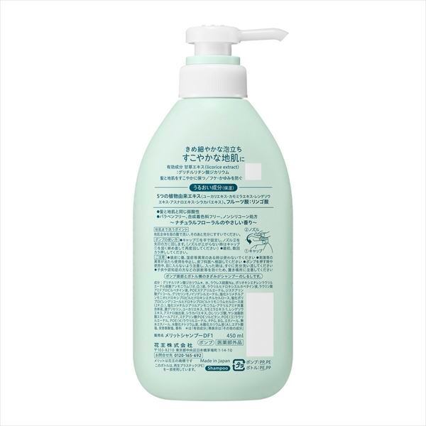 ■【説明】:きめ細やかな泡立ち、すこやかな地肌に。●うるおい成分:5つの植物由来エキス(ユーカリ・カモミラ・レンゲソウ・アスナロ・シラカバ)、フルーツ酸(リンゴ酸)配合●髪と地肌と同じ弱酸性●パラベンフリー・合成着色料フリー・ノンシリコーン処方●有効成分 甘草エキス(グリチルリチン酸ジカリウム)●髪と地肌をすこやかに保つ●フケ・かゆみを防ぐ(医薬部外品)