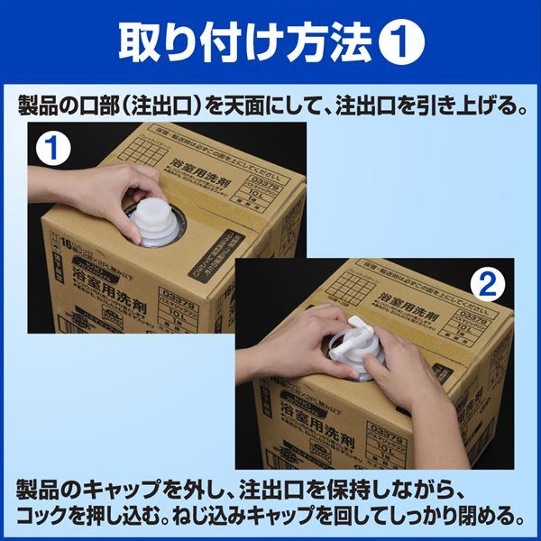 ■【説明】:バスマジックリン10L、スキッシュV10L、KaoブリーチBIBに使用できます。キャップに替えて本コックを取り付けることで、コックの開閉操作で液をかんたんに取り出せます。