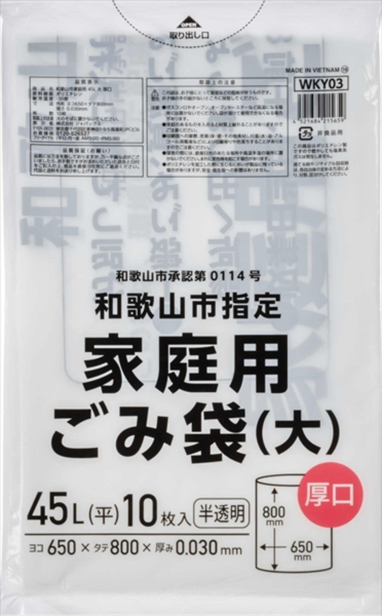■【商品名】: 【まとめ買い】WKY03和歌山市指定家庭用大厚口45L 10枚×50点セット