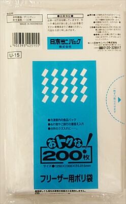 【まとめ買い】U15おトクなフリーザー用ポリ袋 半透明 200枚 【 日本サニパック 】 【 ポリ袋・レジ袋 】【HRM-6422589-1】×20点セット