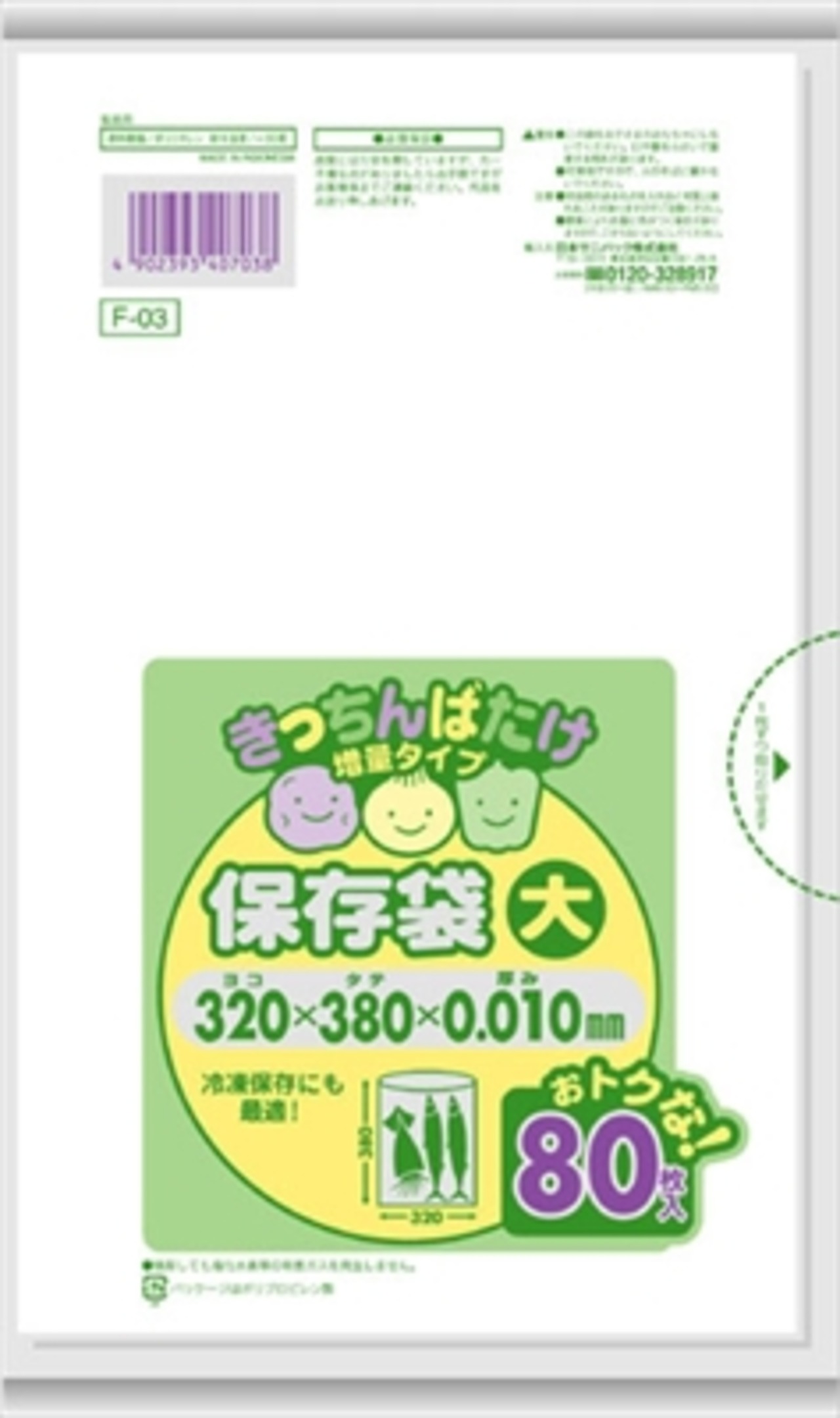 【まとめ買い】F03きっちんばたけ保存袋大 半透明 80枚 【 日本サニパック 】 【 ポリ袋・レジ袋 】【HRM-6422579-1】×50点セット