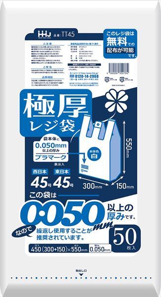 【まとめ買い】極厚レジ袋45号白50枚 TT45 【 ハウスホールドジャパン 】 【 ポリ袋・レジ袋 】【HRM-22529714-1】×10点セット