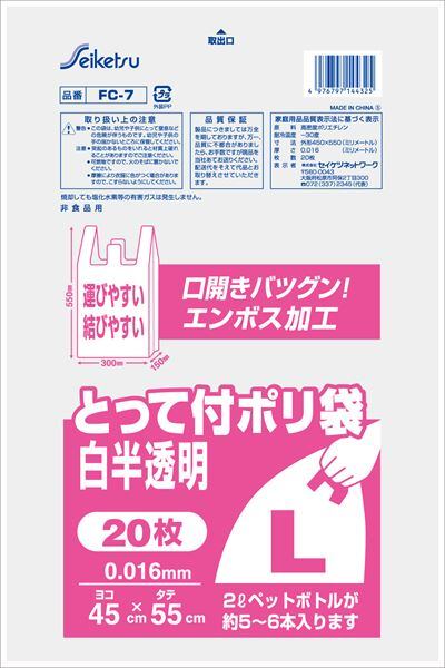 【まとめ買い】とって付きポリ L エンボス 【 セイケツネットワーク 】 【 ポリ袋・レジ袋 】【HRM-22259116-1】×60点セット