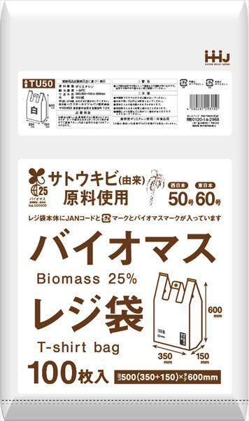 ■【説明】:TU50バイオマス配合25%レジ袋50号白100枚