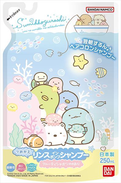 ■【説明】:すみっコぐらしのリンスインポンプシャンプーに、詰め替え用が新登場!人気のアートを使用した、かわいいPKGデザインは2種類!