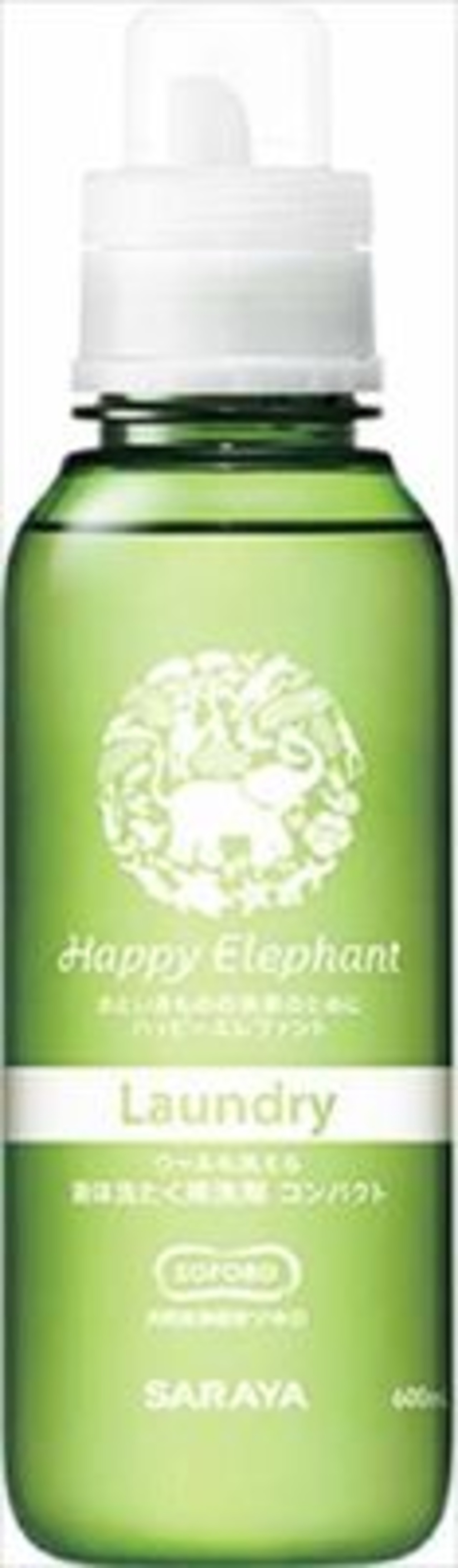【まとめ買い】ハッピーエレファント 液体洗たく用洗剤 コンパクト 600ml 【 サラヤ 】 【 衣料用洗剤・自然派 】【HRM-13546837-1】×12点セット