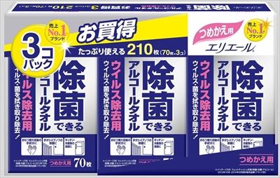 ■【商品名】: 【まとめ買い】エリエール除菌ウイルス詰替70枚×3P×8点セット