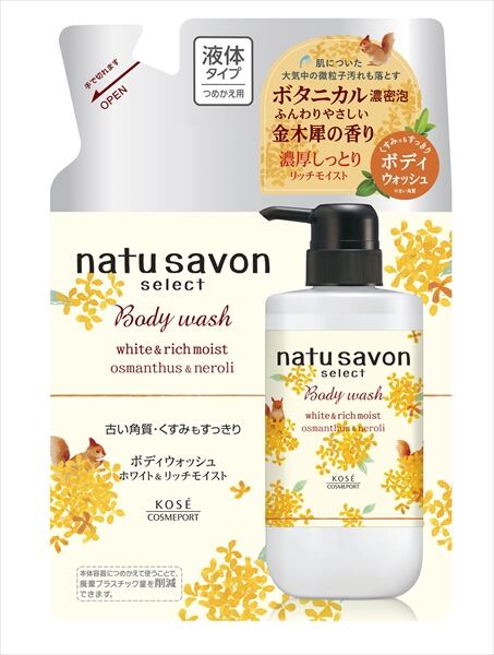 ■【説明】:天然・植物由来成分配合。ボタニカルの恵みを凝縮したもっちり濃厚泡で肌をやさしく包み込むように洗い上げ、古い角質・くすみもスッキリ。ふんわりやさしく広がる金木犀の香り。お得なつめかえ用。
