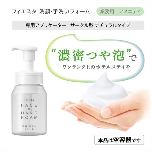 ■【説明】:自然な優しさ。心安らぐホテルステイを。「フィエスタ洗顔・手洗いフォーム」専用の空容器です。いたずら防止機能付き。容量:200mL