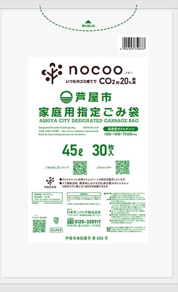 【まとめ買い】GCA54 芦屋市指定袋 平袋 45L 30枚 【 日本サニパック 】 【 ゴミ袋・ポリ袋 】【HRM-19557408-1】×20点セット