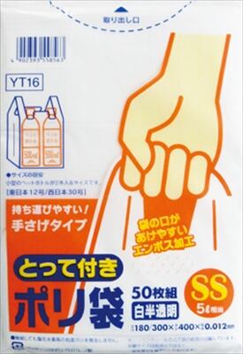 【まとめ買い】*とって付ポリ袋エンボスSS白半透明YT16 【 日本サニパック 】 【 ポリ袋・レジ袋 】【HRM-9092122-1】×60点セット