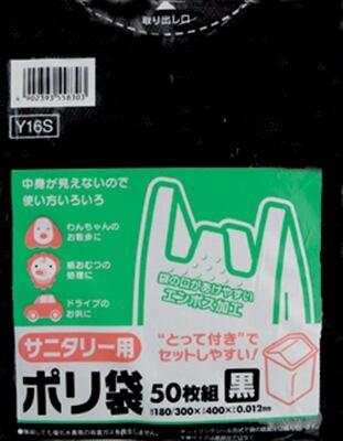 ■【商品名】: 【まとめ買い】とって付ポリ袋サニタリー用エンボス黒Y16S×60点セット