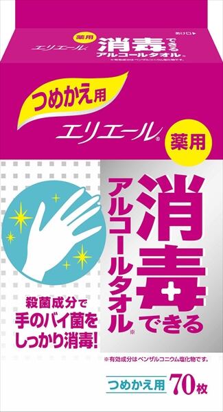 【まとめ買い】エリエール 消毒できるアルコールタオル 詰替え 70枚入 【大王製紙】 【ウェットティッシュ】【HRM-18876420-1】×24点セット