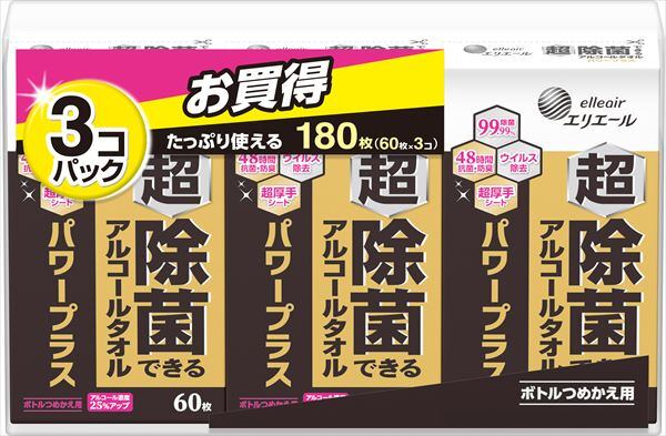 【まとめ買い】エリエール 超除菌できるアルコールタオル パワープラス ボトルつめかえ用60枚3個パック【HRM-22567596-1】×8点セット