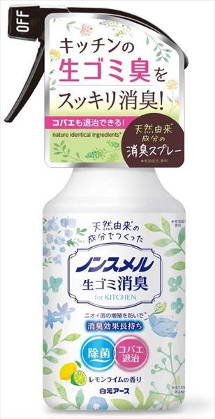 ■【説明】:ゴミ箱や三角コーナー、排水口の気になる生ゴミ臭を消臭。ニオイ菌の増殖を防ぎ消臭効果が長持ちします。コバエ対策にも。キッチン周りで使いやすい天然由来の成分でつくった消臭剤です。※有効成分、香料 レモンライムの香り。