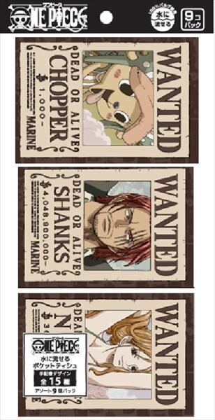 ■【説明】:国民的アニメ、ワンピースの水に流せるポケットティシュです。大人から子供まで幅広い人気を誇るキャラクターです。