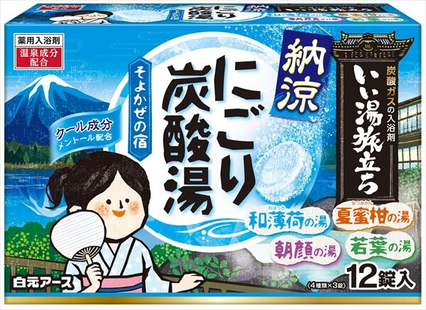 【まとめ買い】いい湯旅立ち 納涼にごり炭酸湯 そよかぜの宿12錠入 【 白元ア?ス 】 【 入浴剤 】【HRM-20699013-1】×16点セット