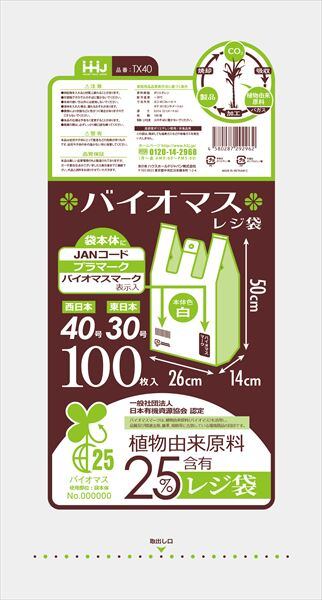 ■【説明】:TX40バイオマス配合25%レジ袋40号白100枚