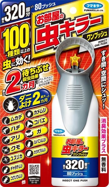 ■【説明】:○室内空間に噴霧するだけでイヤな虫をまとめて退治。○100種以上の虫に効く。○待ちぶせ殺虫効果最大2ヵ月*1*(2 アリ、カメムシ、クモ、ムカデに対する効果)。○ダニよけ効果最大2ヵ月*2。*1:水がかからない場所に使用方法通り処理した場合。*2:使用環境により異なります。