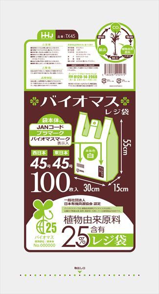 ■【説明】:TX45バイオマス配合25%レジ袋45号白100枚