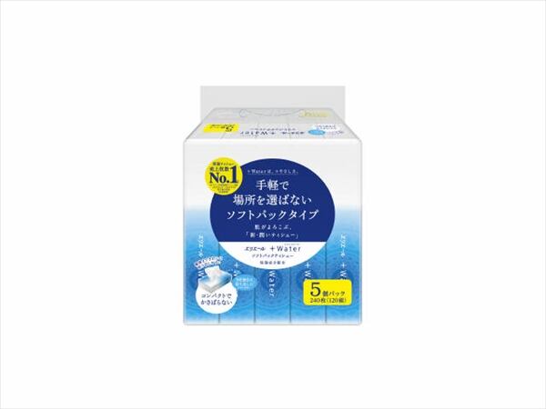 【まとめ買い】エリエール+Water プラスウォーター ソフトパック 120組×5個パック 【ティッシュ】【HRM-18876415-1】×18点セット