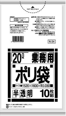 ■【商品名】: 【まとめ買い】N24 Nシリーズ20L 白半透明 10枚×60点セット
