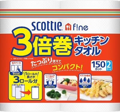 ■【説明】:スコッティファイン 3倍巻キッチンタオル 150カット2ロール