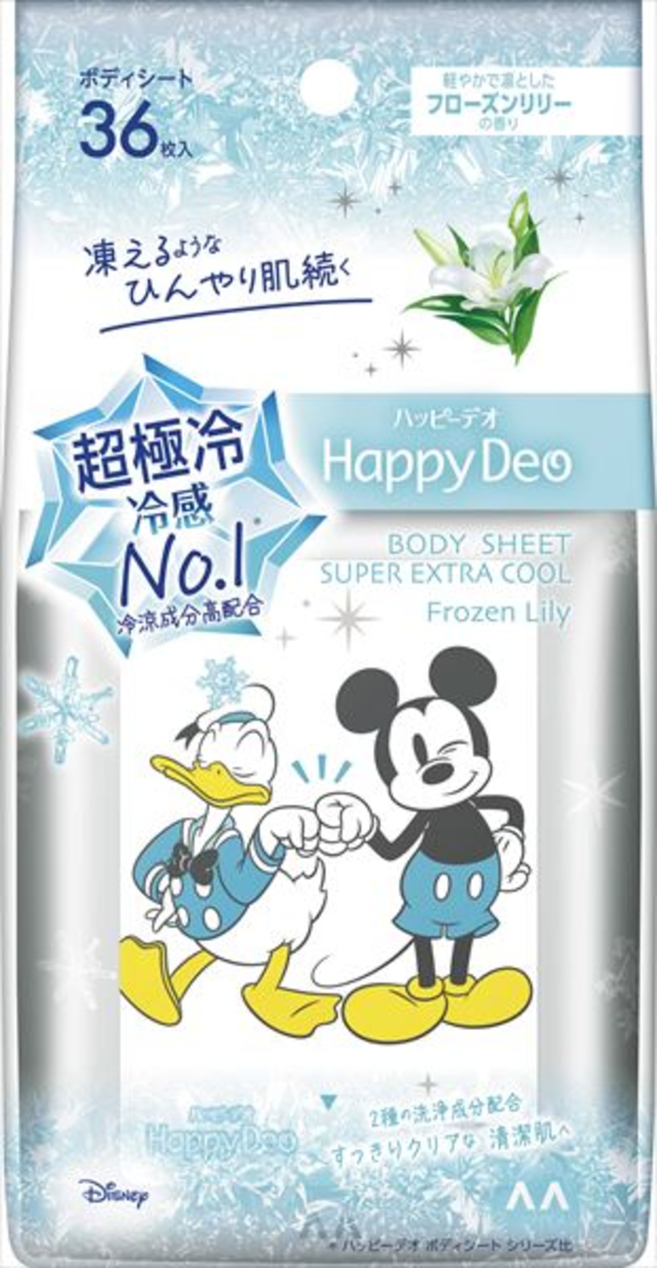 ■【説明】:ハッピーデオ ボディシート史上冷感NO1凍えるようなひんやり肌と軽やかな香りが続く。
