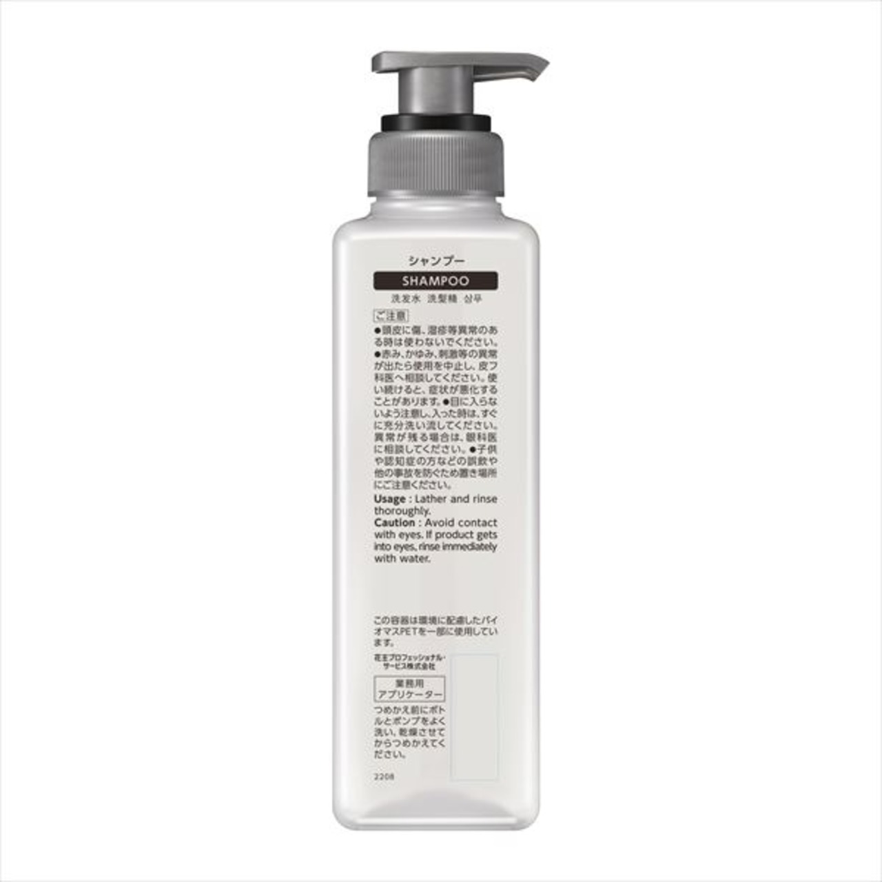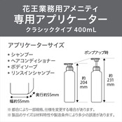 ■【説明】:花王業務用アメニティ シャンプー専用の空容器。部屋置きにオススメの容量400mLタイプ。目を閉じても用途が識別できる触覚識別(凸状のきざみ)、直感的に伝わる識別ピクトグラム付き。外国の方のための多言語(英語・中国語・韓国語)表記対応。