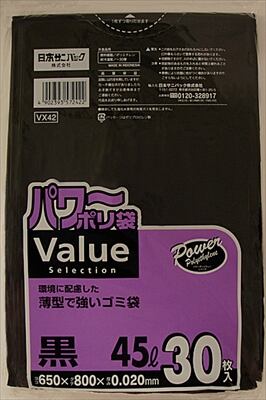 【まとめ買い】VX42 VALUE 45L黒30枚 【 日本サニパック 】 【 ゴミ袋・ポリ袋 】【HRM-6423065-1】×25点セット