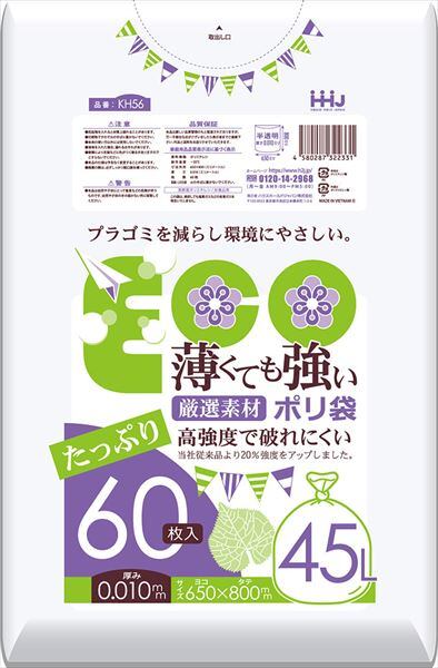 ■【説明】:KH56薄くても強いポリ袋45L半透明60枚0.01mm