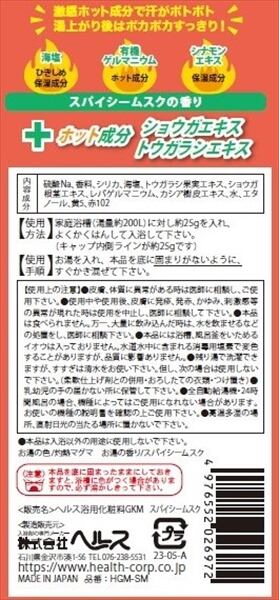 ■【説明】:有機ゲルマニウムとショウガエキス、トウガラシエキスで、たっぷり汗かきエステ。スパイシームスクの香り。