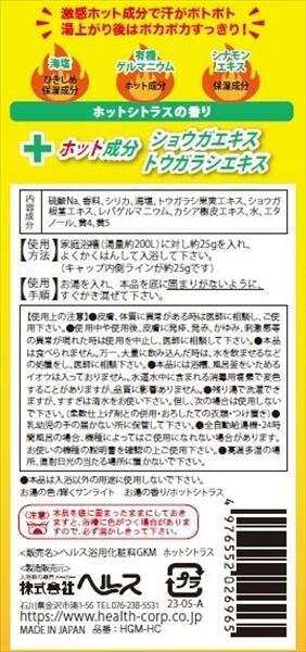 ■【説明】:有機ゲルマニウムとショウガエキス、トウガラシエキスで、たっぷり汗かきエステ。ホットシトラスの香り。