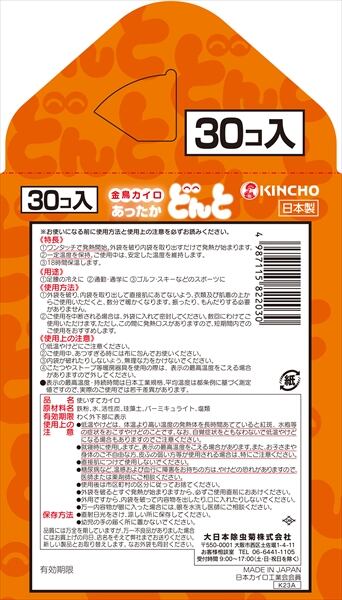 ■【説明】:封を切るだけで暖まる使い捨てカイロ。通勤・通学に、ゴルフ、スキーなどのスポーツに、その他のスポーツ観戦にもおすすめです。約18時間持続。30個入。
