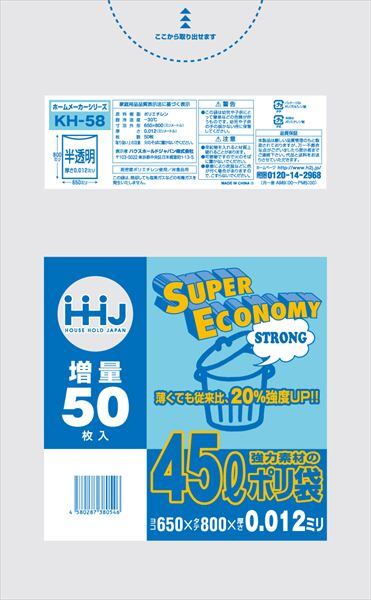 【まとめ買い】KH58 ポリ袋 45L半透明 50枚 0.012 【ハウスホールドジャパン】 【ゴミ袋・ポリ袋】【HRM-22529725-1】×30点セット