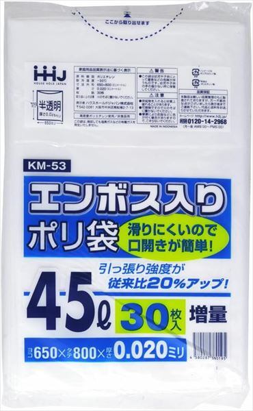 【まとめ買い】KM53 ポリ袋 45L半透明 30枚 0.02 【 ハウスホールドジャパン 】【HRM-22522142-1】×30点セット