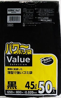 【まとめ買い】VX57 VALUE45L黒50枚 【 日本サニパック 】 【 ゴミ袋・ポリ袋 】【HRM-10517352-1】×16点セット