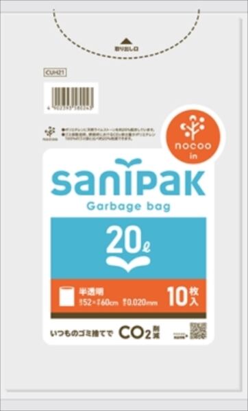 【まとめ買い】CUH21 nocoo サニパックポリ袋 半透明 20L 10枚 【ゴミ袋・ポリ袋】【HRM-17772159-1】×80点セット