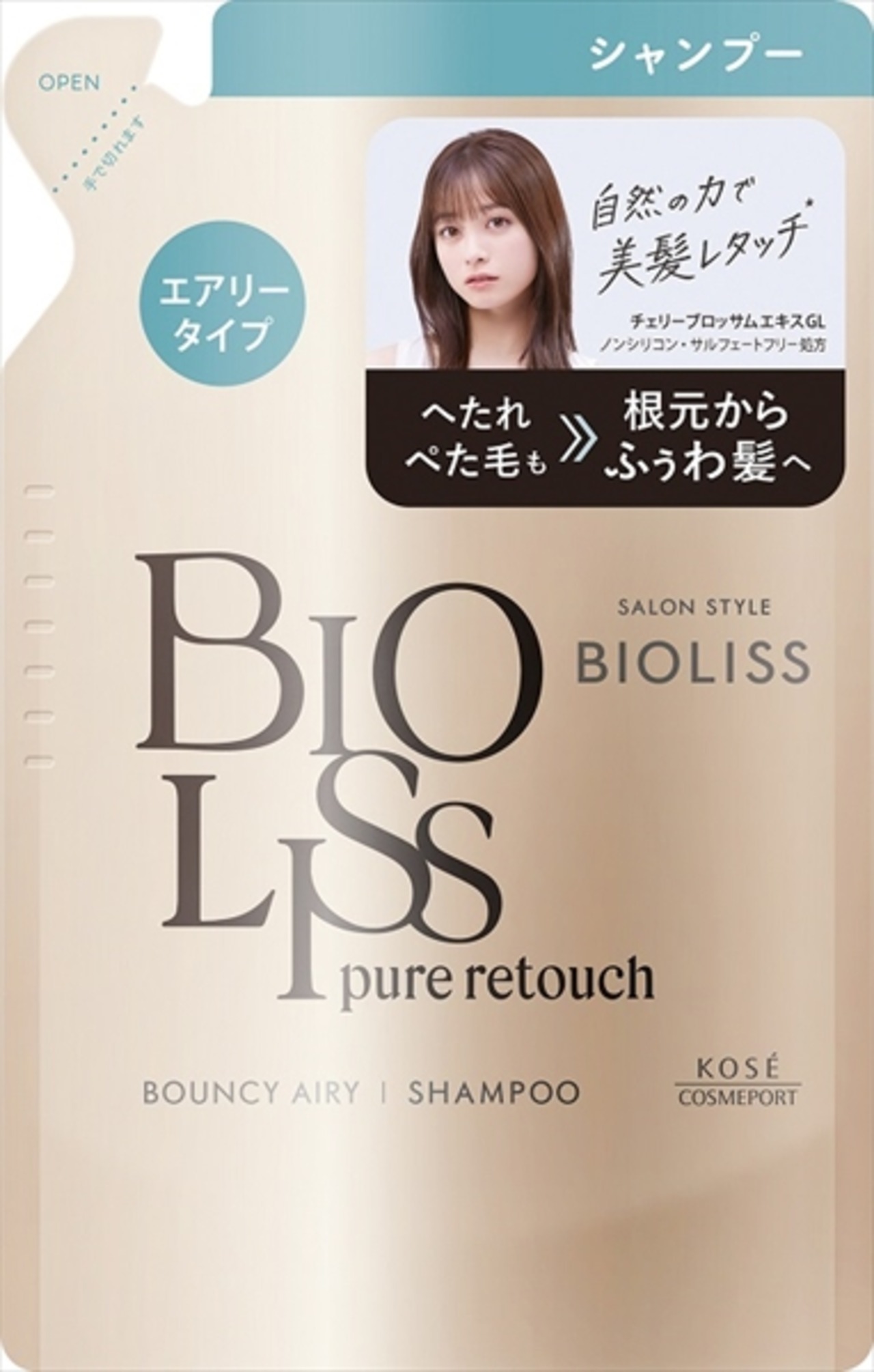 ■【説明】:自然の力で美髪レタッチ!へたれたぺた毛も根元からふぅわ髪へみちびくエアリータイプのシャンプー。使うたびやみつきになるペア&ミュゲの香り。お得なつめかえ用。ツヤのある髪に仕上がります。