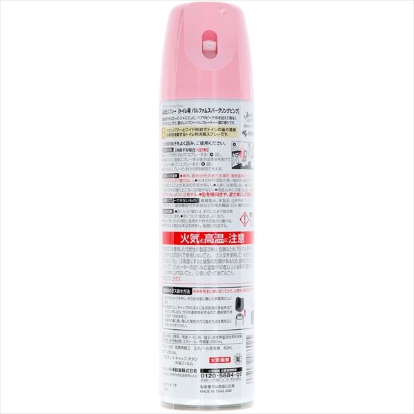 ■【説明】:●イオンパワーとワイド噴射でトイレの後の悪臭を瞬間消臭するトイレ用消臭スプレーです●トイレに置いても抵抗感のないシンプルかつ可愛らしいデザイン●華やかな愛らしいフローラルフルーティ調の香りで上質な空間を演出