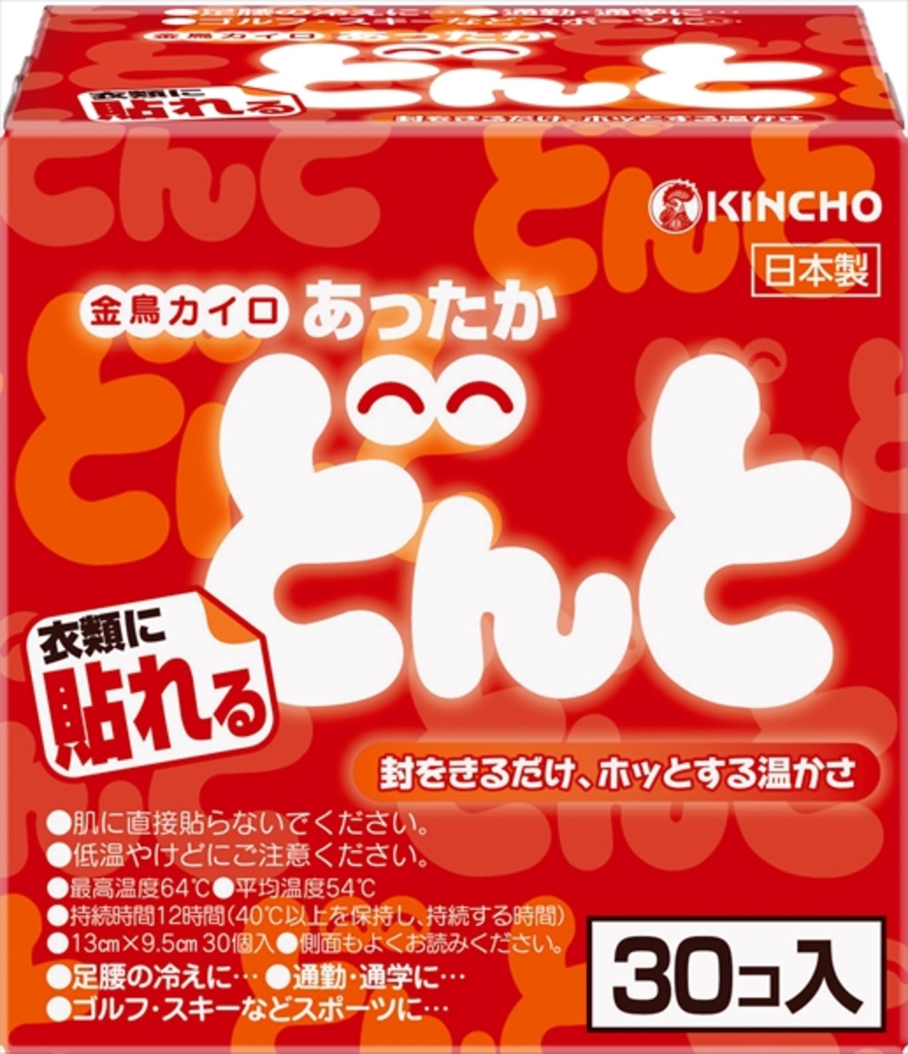 ■【説明】:封を切るだけで暖まる、粘着剤付きの衣類に貼るカイロ。薄型フィットタイプでかさばりません。約12時間持続。30個入。