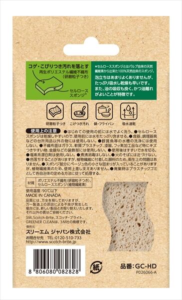 ■【説明】:100%再生プラスチックの不織布使用。パルプ由来の天然繊維素からできたセルローススポンジを使用。研磨粒子つきのハードな汚れを落とすタイプ。パッケージは再生紙を使用。