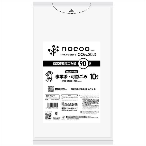 ■【説明】:西宮市事業系可燃ごみ袋90L10枚。nocoo素材を使用し、二酸化炭素を20%削減。