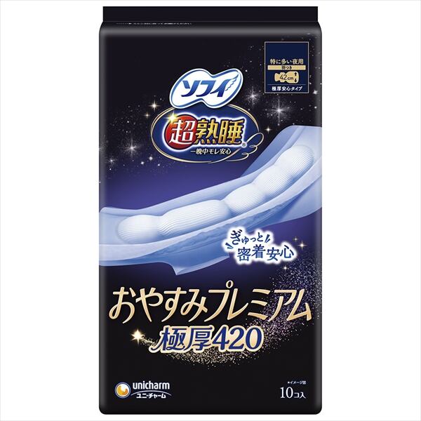 ■【説明】:ソフィ超熟睡おやすみプレミアムは極厚クッションがからだにぎゅっと密着してスキマを防ぐから安心、ワンランク上のおやすみへ。