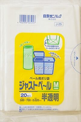 【まとめ買い】J−25 ジャストペールMロング 半透明 20枚 【 日本サニパック 】 【 ポリ袋・レジ袋 】【HRM-6419117-1】×40点セット